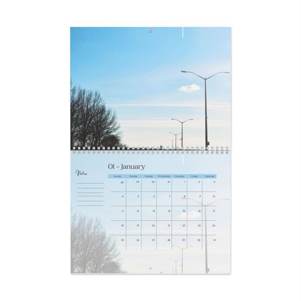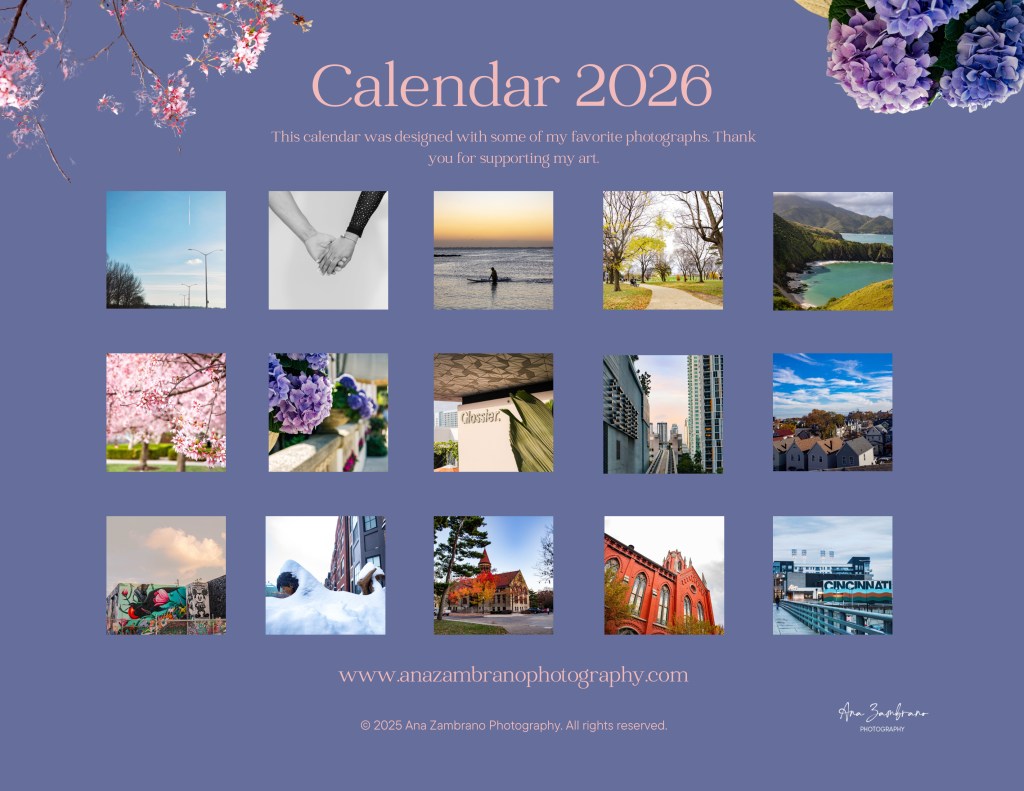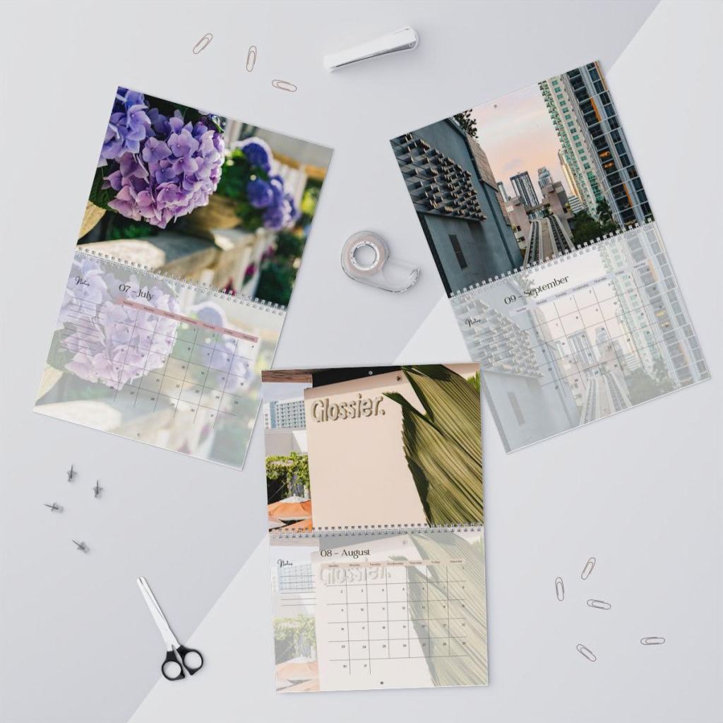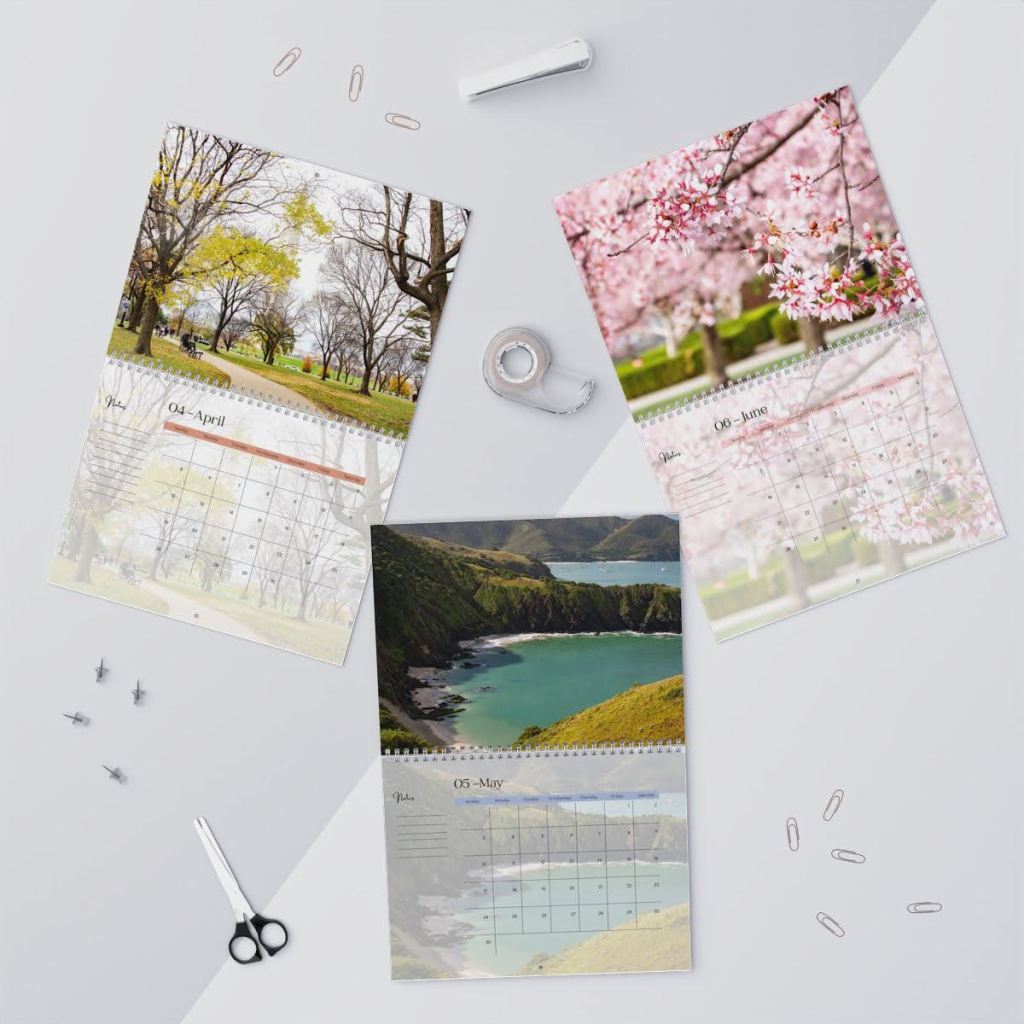 Each month reveals a unique image — from peaceful beaches in Venezuela to vibrant flowers and cityscapes — turning every page into a moment of inspiration.